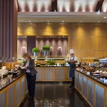 The lounge bar offers a selection of snacks and sushi. It also features a lounge for guests' comfort.